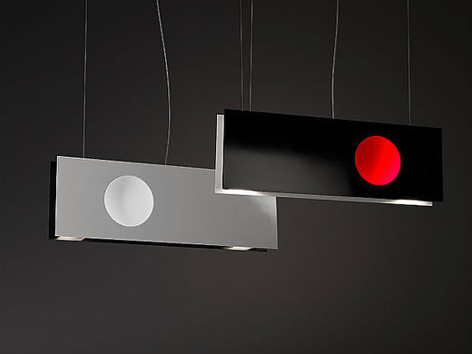 Gegensätze ziehen sich an – hochglänzende Oberflächen, eine Seite weiß, die andere schwarz. Die runde Öffnung auf beiden Seiten erlaubt mit Hilfe einer weißen oder roten Blende ein besonderes Zusammenspiel von Licht und Farbe.